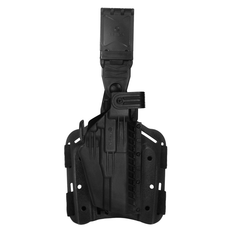 - Catraca rotativa que possibilita a rotação do coldre, para ajuste do ângulo e maior conforto no manuseio do equipamento;